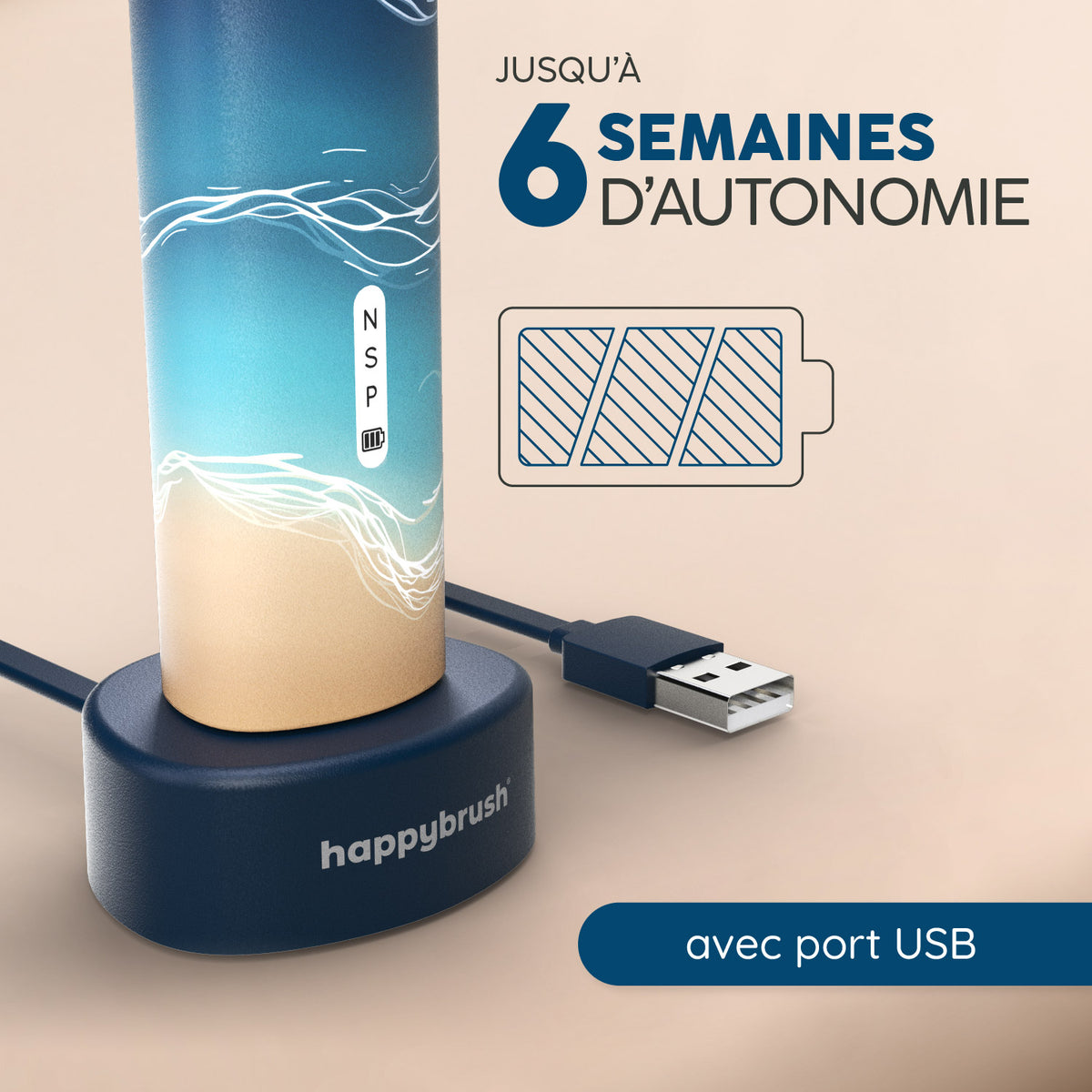 La batterie puissante de nos brosses à dents électriques t'accompagne très longtemps dans tes aventures : jusqu'à 6 semaines avec la brosse à dents sonique Eco Vibe 3 jusqu'à 3 semaines avec la brosse à dents rotative R2